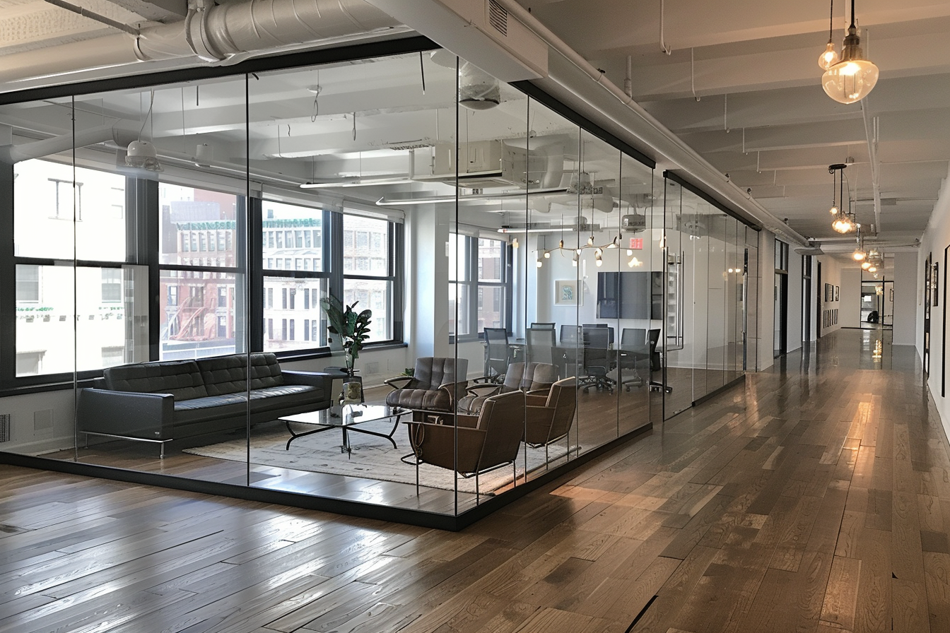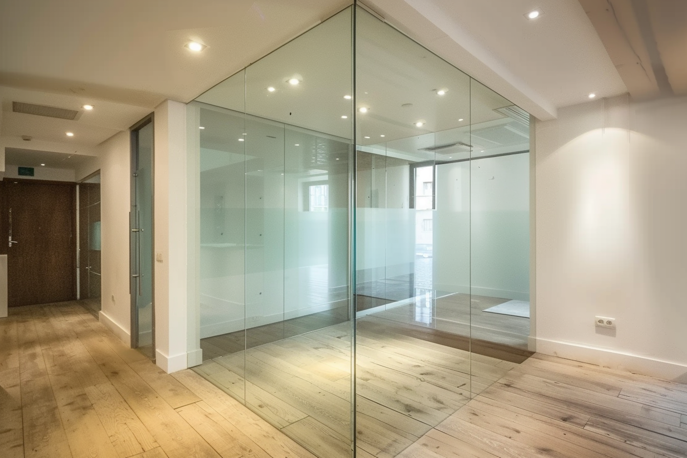 Достоинства и недостатки стеклянных офисных перегородокК преимуществам стеклянных перегородок относят:- простоту установки;