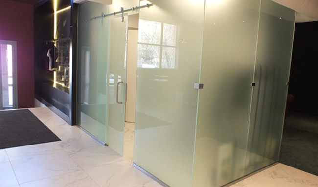 В проекте остекления сквош клуба класса Premium компания GLADIS воплотила инновационное решение — гардероб с непрозрачными матовыми стеклянными стенами. Особенность этого гардероба заключалась в раздвижных стеклянных дверях с верхним креплением, что не только экономит пространство, но и придает интерьеру современный и утонченный вид.