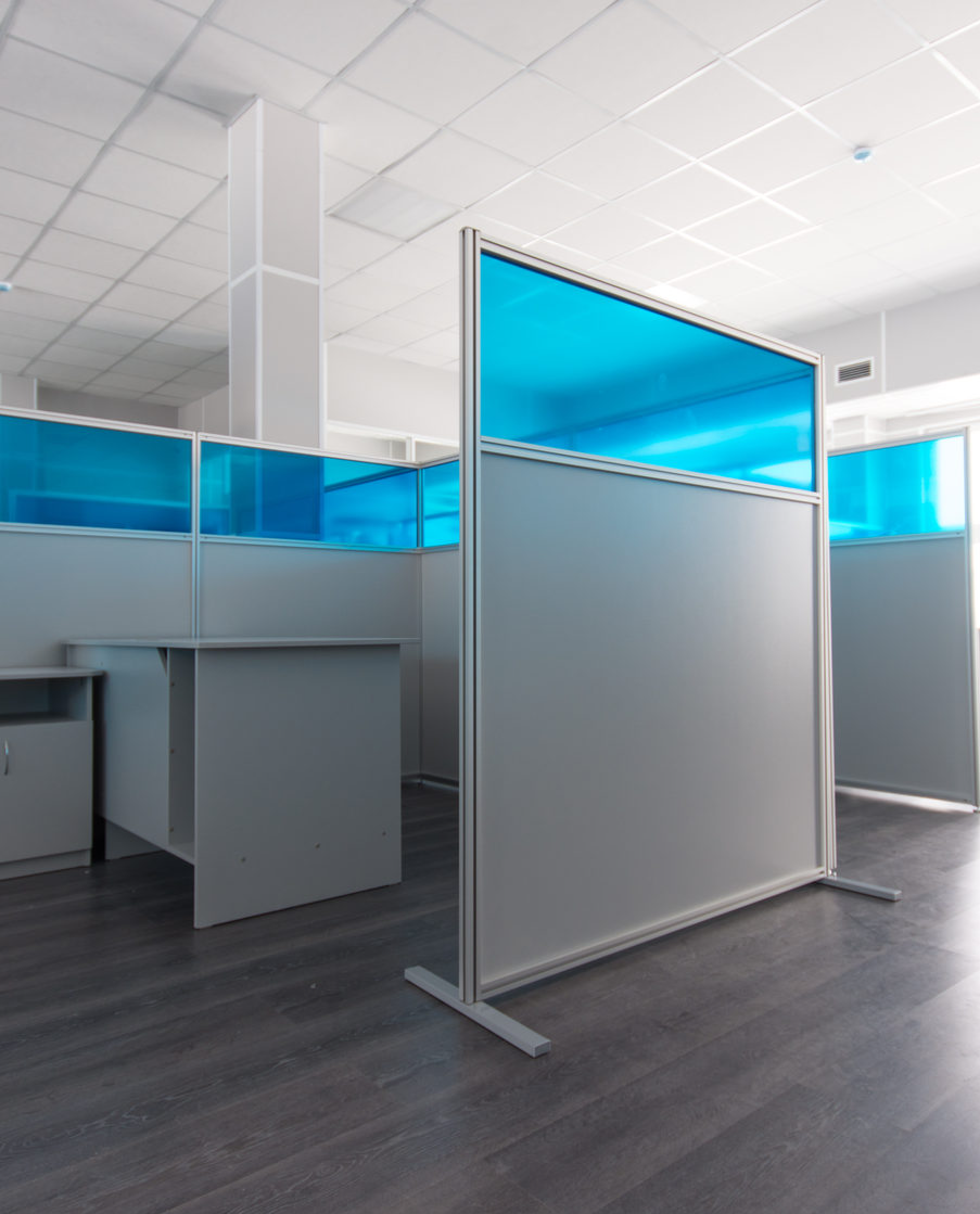 Мы используем для производства каркасных перегородок стекло любого типа: закаленное, матовое, армированное, акриловое, триплекс различной толщины. Материал подбирается в зависимости от пожеланий и бюджета заказчика конкретного проекта.
